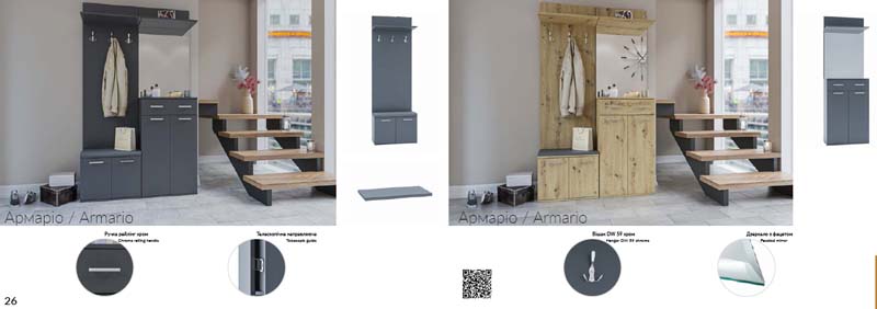 Корпус і фасади передпокою Фокус зроблені з ЛДСП. Передпокій Фокус – це втілення стилю та сучасності. Колір: Дуб артісан. Корпус і фасади виготовлено з ЛДСП. Корпус – 16 мм; фасад – 18 мм. Напрямні на шухлядах телескопічні. Висувний вішак: ДЦ. Покращене пакування, адаптоване для інтернет-відправлень. Кромка: ABS 0,5