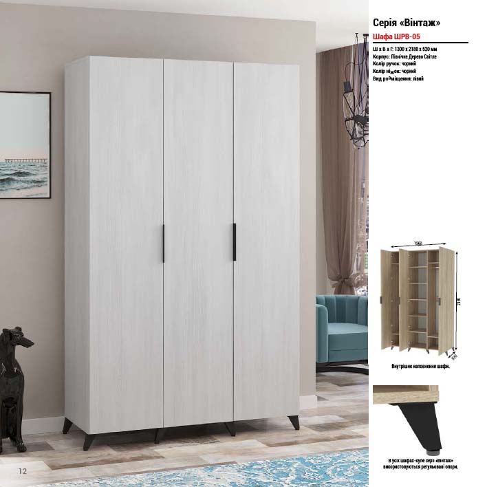 Висота: 2190 мм Ширина: 1960 мм Глибина: 600 мм