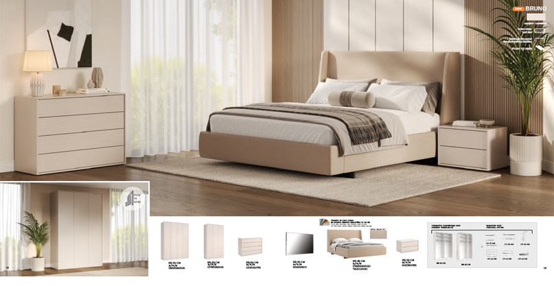 Спальний набір “Bruno” – це втілення сучасного стилю та бездоганної функціональності. Головна родзинка колекції — фасади з системою відкривання push-to-open, які не потребують ручок і забезпечують максимально чистий та мінімалістичний вигляд. Легкий дотик — і перед вами відкривається елегантний простір, де кожна деталь продумана до дрібниць. Елементи колекції виконані без лакованого покриття, що надає їм природного вигляду та підкреслює текстуру матеріалу. Колекція включає м’яке непідйомне ліжко розміром 160х200 см, доступне в бежевій тканині Royal Velvet 2 або в інших тканинах на замовлення, шафи, комод і приліжкові тумби. “Bruno” — це ідеальне рішення для створення стильного та комфортного простору, який підкреслить вашу індивідуальність і додасть вашій спальні відчуття справжнього затишку.