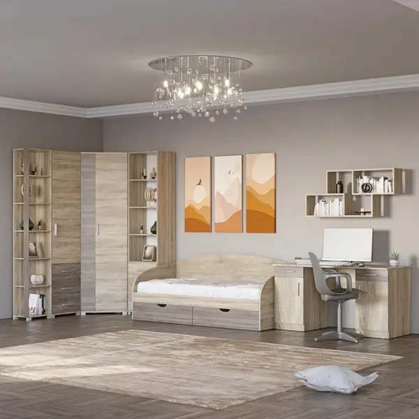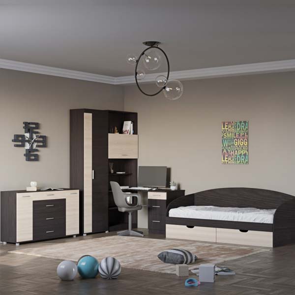 Модульна дитяча, можна купувати в комплекті або по елементах Корпус ДСП Фасад МДФ рамковий Колір “Ясен Шимо”