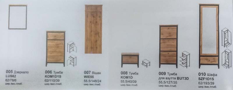 Дзеркало 100 Комод 2Д4Ш Дзеркало Туалетка висота, мм 780 830 790 1471 ширина, мм 1000 1248 630 900 глибина, мм 436 436   Комод КОМОД 5Ш КОМОД 6ШДЗЕРКАЛО ТУМБАприліжкова висота, мм 830 1013 1663 464 ширина, мм 900 600 1150 450 глибина, мм 436 467 436 443   ПЕРЕДПОКІЙ 150 ТУМБА взуттєва Дзеркало […]