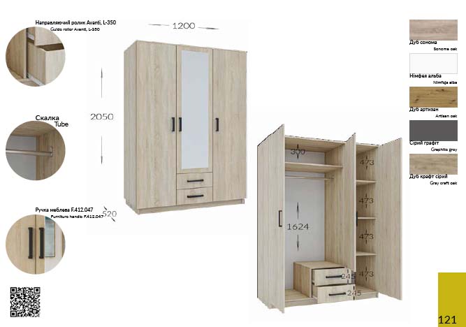 Висота: 2190 мм Ширина: 1960 мм Глибина: 600 мм