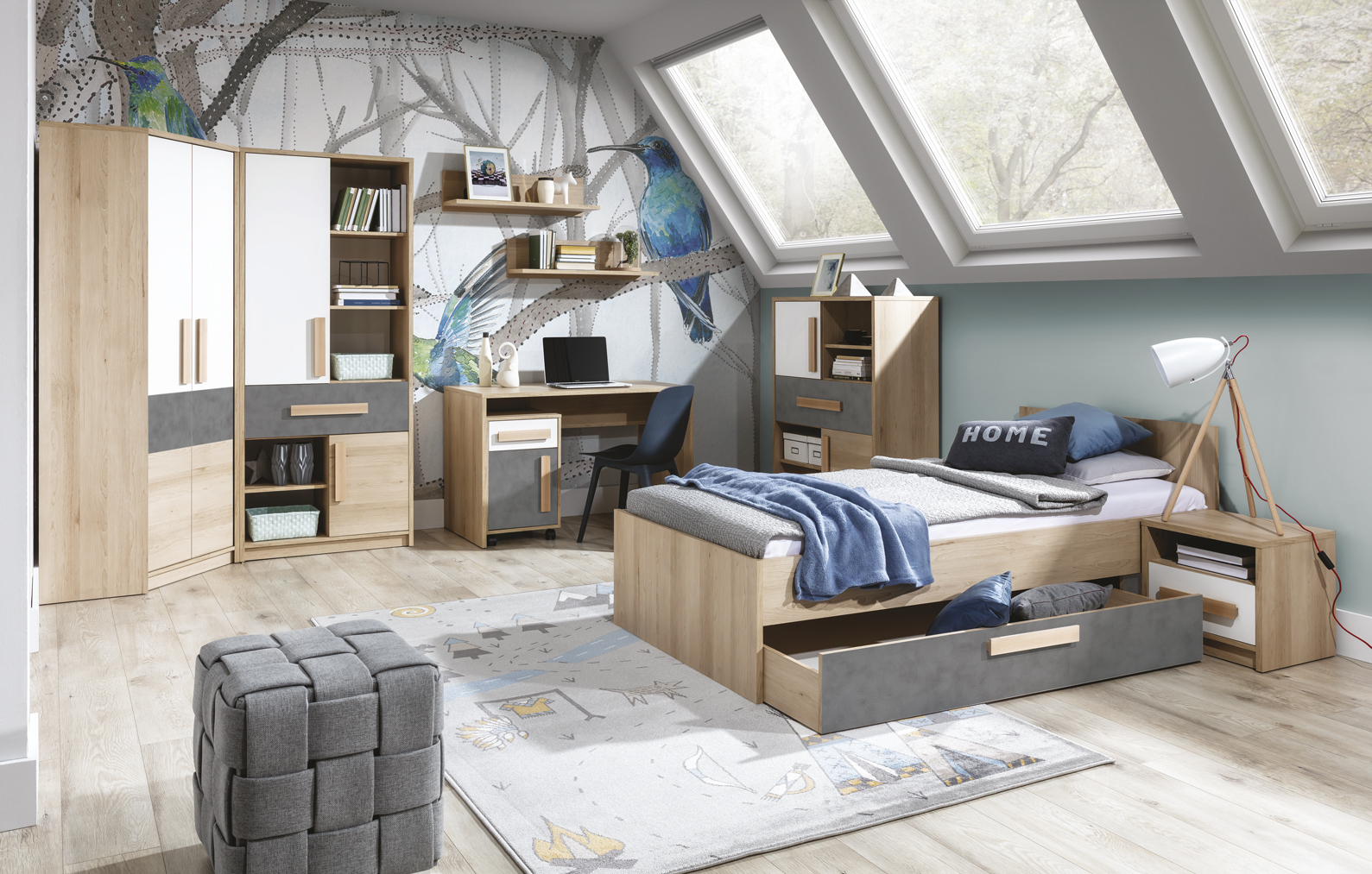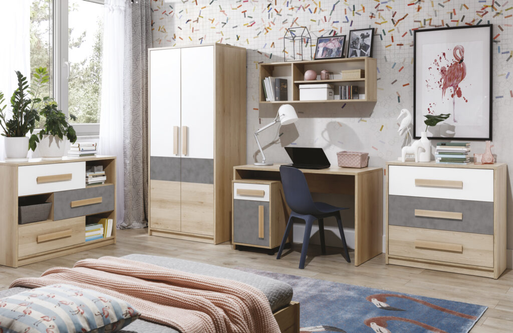 Гладкі фасади і строгі форми, зручні дерев’яні ручки в оригінальному дизайнерському рішенні – все це приверне увагу справжніх поціновувачів модних та безпечних меблів для дітей і молоді.
