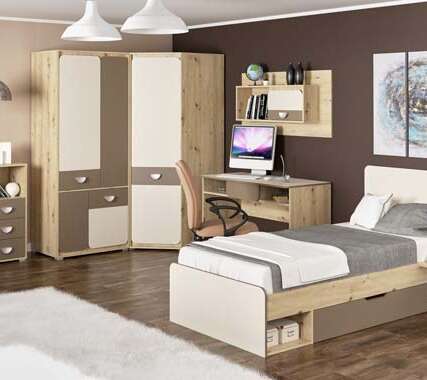 Гладкі фасади і строгі форми, зручні дерев’яні ручки в оригінальному дизайнерському рішенні – все це приверне увагу справжніх поціновувачів модних та безпечних меблів для дітей і молоді.