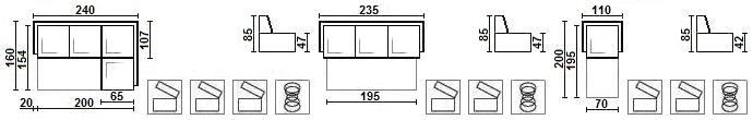 габаритні розміри довжина дивана 293.0 (см) глибина дивана 190.0 (см) Висота посадкової частини дивана 45.0 (см) Висота дивана з урахуванням спинки 80.0 (см) Розміри спального місця Довжина спального місця 263.0 (см) Ширина спального місця 132.0 (см) Матеріал виготовлення каркас дивана натуральне дерево, ДСП, ДВП Підстава спального місця дерев’яні ламелі опори дерево