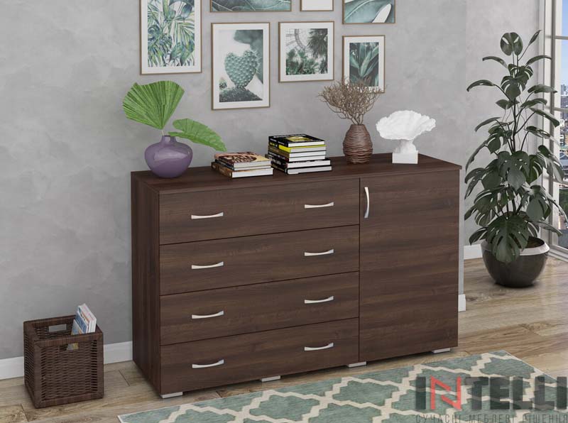 Комод є елементом спальні “Скарлет” Можна комплектувати дзеркалом Корпус ДСП Фасад ДСП Колір Дуб Сонома + Венге Магія Розміри: 0,80 х 0,46 х 0,82 Розміри дзеркала 0,80 х 0,59