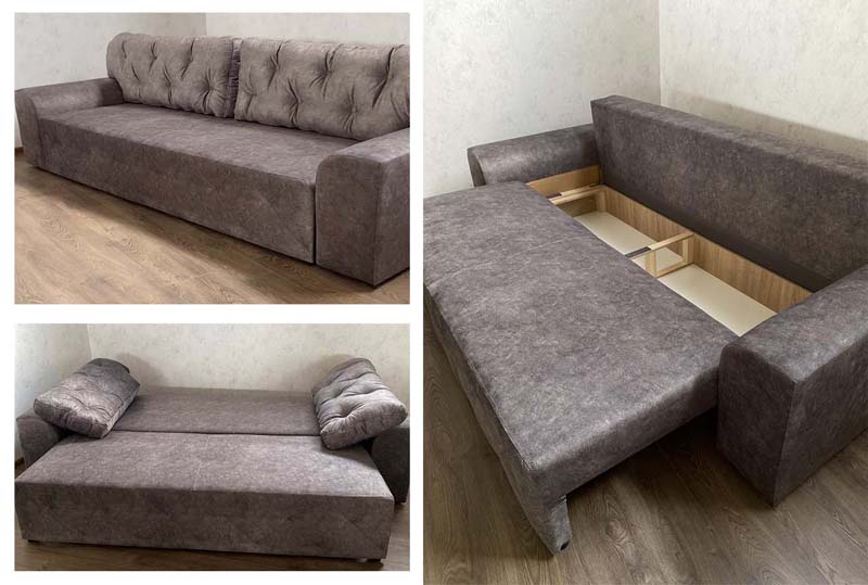 Довжина 2,10м Глибина 0,97м висота 0,75м Розміри спального місця 1,95м х 1,40м Наповнення: синтепух, поролон ST щільністю 25-40 та блочна пружина Каркас: дуб або бук (частини із великим навантаженням); сосна (решта деталей); фанера 15мм (місця кріплення механізмів); ДСП і ДВП (спинка, кришка ящика для білизни, підлокітники); картон (заокруглення та частини об’ємної форми); цвяхи, самонарізи і скоба (з’днання каркасів); шиповані з’єднання (з’єднань дерев’яних конструкцій) Механізм розкладання ? єврокнижка Дана модель розрахована для щоденного […]