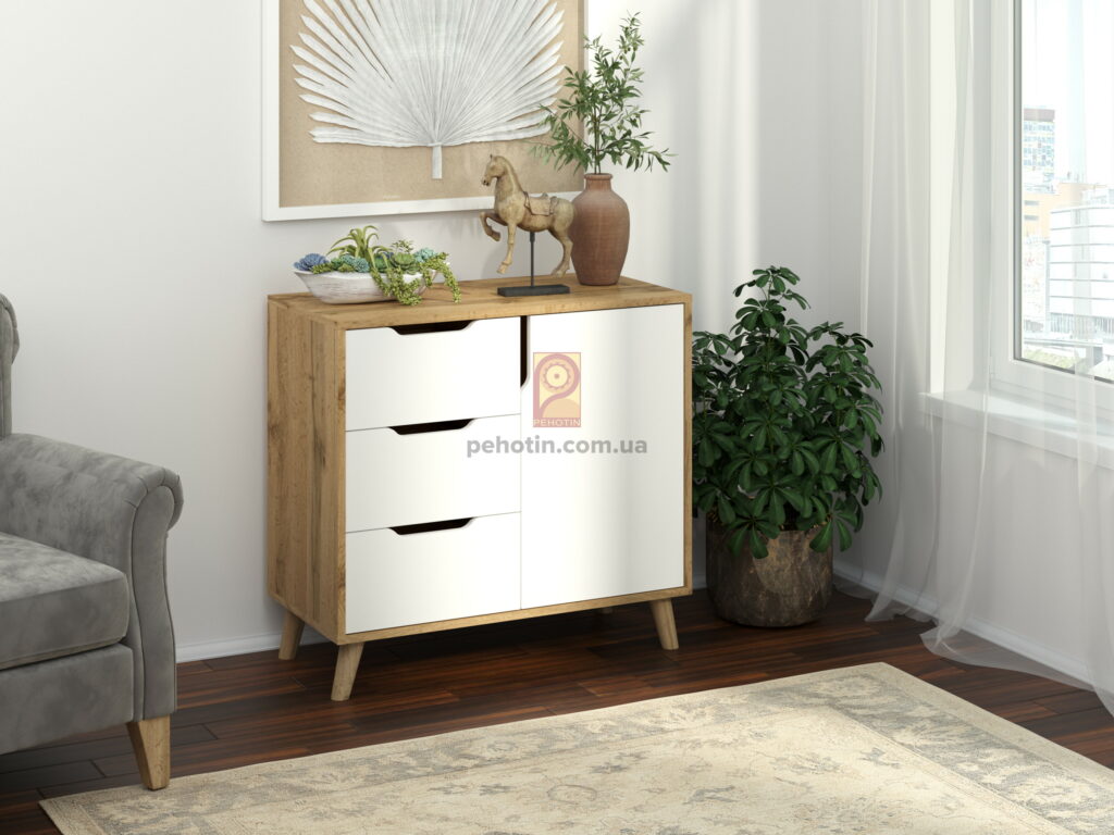 Габаритні розміри Висота: 94 см. Ширина: 100 см. Глибина: 50 см. Матеріали Деталі: Каркас комода і шухляд – ламіноване ДСП, фасад шухляд та стільниця – шпон МДФ. Дно шухляди : ДВП. Направляючі механізми: телескопічні повного висуву Кольори: Венге | Горіх | Лак | Махонь | Вільха