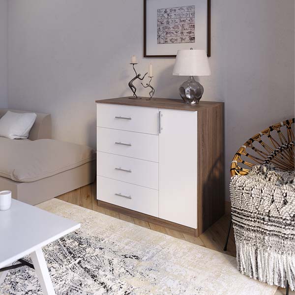 Комод є елементом спальні “Скарлет” Можна комплектувати дзеркалом Корпус ДСП Фасад ДСП Колір Дуб Сонома + Венге Магія Розміри: 0,80 х 0,46 х 0,82 Розміри дзеркала 0,80 х 0,59