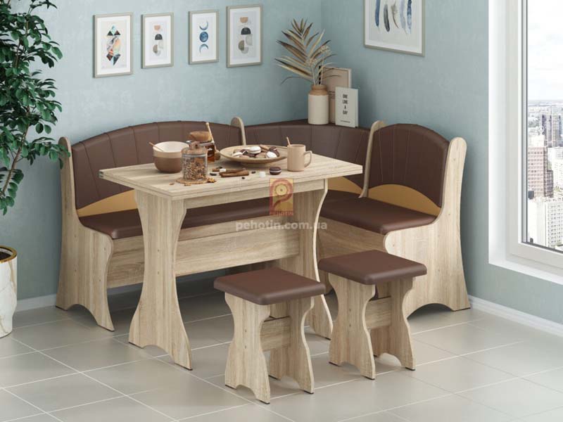 Корпус та фасади виготовлені із ЛДСП. Стіл поворотно-розкладного типу. Кухонний куточок Роман має додаткову приховану нішу для зберігання речей під сидінням. Корпус і фасади виготовлено з ЛДСП. Корпус – 16 мм. Кромка: AБC 0,5/1 Продається виключно комплектом. Розміри: Стілець ширина – 350мм. висота – 450мм. глибина – 350мм. Стіл розсувний ширина – 900мм. висота – […]