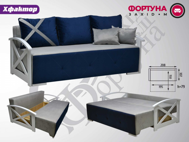 Довжина 2,10м Глибина 0,97м висота 0,75м Розміри спального місця 1,95м х 1,40м Наповнення: синтепух, поролон ST щільністю 25-40 та блочна пружина Каркас: дуб або бук (частини із великим навантаженням); сосна (решта деталей); фанера 15мм (місця кріплення механізмів); ДСП і ДВП (спинка, кришка ящика для білизни, підлокітники); картон (заокруглення та частини об’ємної форми); цвяхи, самонарізи і скоба (з’днання каркасів); шиповані з’єднання (з’єднань дерев’яних конструкцій) Механізм розкладання ? єврокнижка Дана модель розрахована для щоденного […]