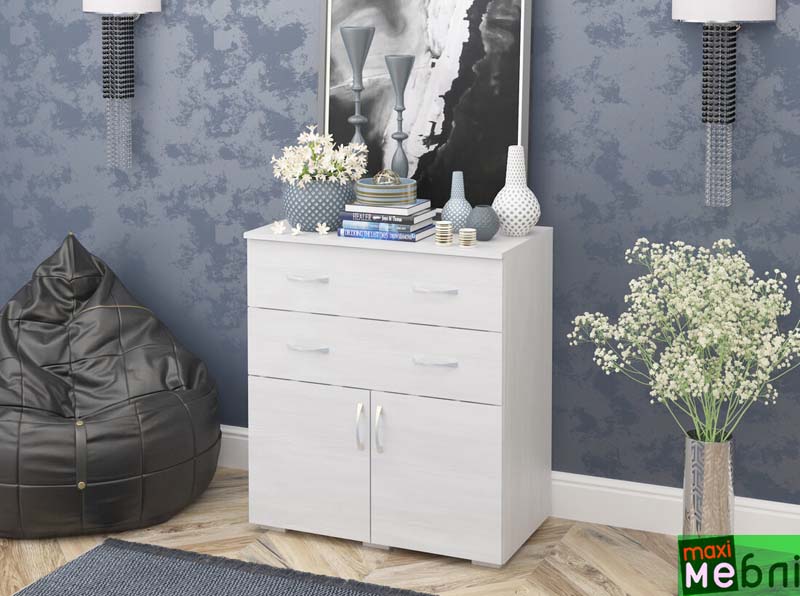 Комод є елементом спальні “Круїз” Можна докомплектувати його дзеркалом Корпус ДСП Фасад ДСП Йде у кольорі “Білий”+”Дакар” Розміри комоду 1334*811*404 Розміри дзеркала 900*800*20