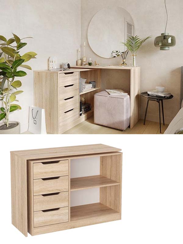 Габаритні розміри Висота: 94 см. Ширина: 100 см. Глибина: 50 см. Матеріали Деталі: Каркас комода і шухляд – ламіноване ДСП, фасад шухляд та стільниця – шпон МДФ. Дно шухляди : ДВП. Направляючі механізми: телескопічні повного висуву Кольори: Венге | Горіх | Лак | Махонь | Вільха