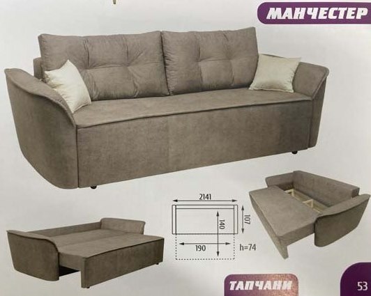 Довжина 2,10м Глибина 0,97м висота 0,75м Розміри спального місця 1,95м х 1,40м Наповнення: синтепух, поролон ST щільністю 25-40 та блочна пружина Каркас: дуб або бук (частини із великим навантаженням); сосна (решта деталей); фанера 15мм (місця кріплення механізмів); ДСП і ДВП (спинка, кришка ящика для білизни, підлокітники); картон (заокруглення та частини об’ємної форми); цвяхи, самонарізи і скоба (з’днання каркасів); шиповані з’єднання (з’єднань дерев’яних конструкцій) Механізм розкладання ? єврокнижка Дана модель розрахована для щоденного […]