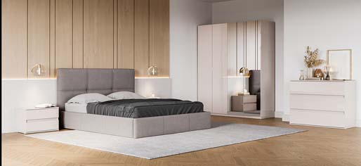 Кровать 2сп (1,6м) . . . . . . . . 1800*1110*2080 Тумбочка . . . . . . . . 460*475*435 Шкаф 4Д . . . . . . . . 1780*2330*595 Зеркало . . . . . . . . 785*950*35 Комод . . . . . . . . 1090*890*470