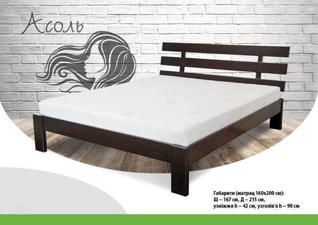 Розмір спального місця Довжина: 200 см; Ширина: 90, 120, 140, 160, 180 см Габаритні розміри: Довжина: 208,5 см Ширина: +8 см до ширини спального місця Висота стійки від голови: 69 см Висота стійки від ніг: 36,5 см Порода деревини: сосна, бук Покриття: гіпоалергенний лак італійського виробництва Основа під матрац: ортопедичні ламелі товщиною 8 мм