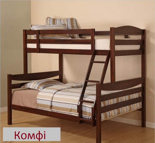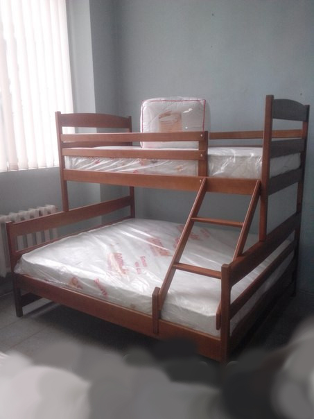 Нижній ярус двохспальне(півтораспальне) ліжко, верхній ярус односпальне ліжко.