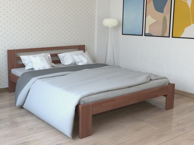 Розмір спального місця Довжина: 200 см; Ширина: 120, 140, 160, 180 см Габаритні розміри: Довжина: 210,5 см Ширина: +6 см до ширини спального місця Висота стійки від голови: 80 см Висота стійки від ніг: 39 см Порода деревини: сосна, бук Покриття: гіпоалергенний лак італійського виробництва Основа під матрац: ортопедичні ламелі товщиною 8 мм