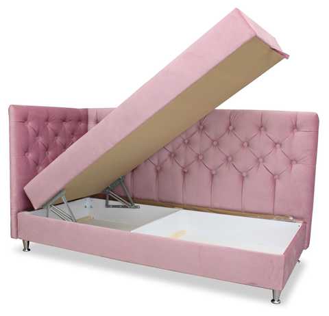 Матрас піднімається на підйомниках (стандартно ідуть механічні, можна замовляти газові амортизатори) – всередині ліжка вмістимий короб для білизни