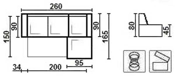 Габарити: 2,30 х 1,60 х 0,87 Спальне місце: 2,05 х 1,40 Каркас: сосна, вільха, фанера Наповнення: пружинна змійка, поролон, синтепон