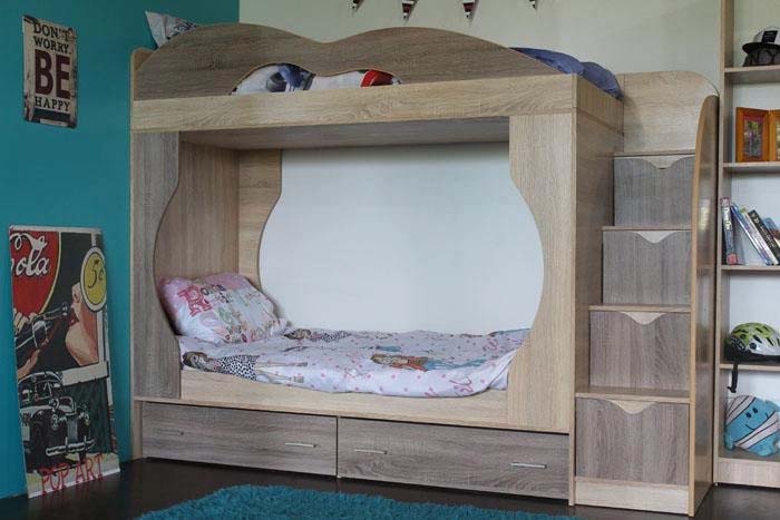 Зручні сходи на другий поверх, на яких дверцята з нішами для речей