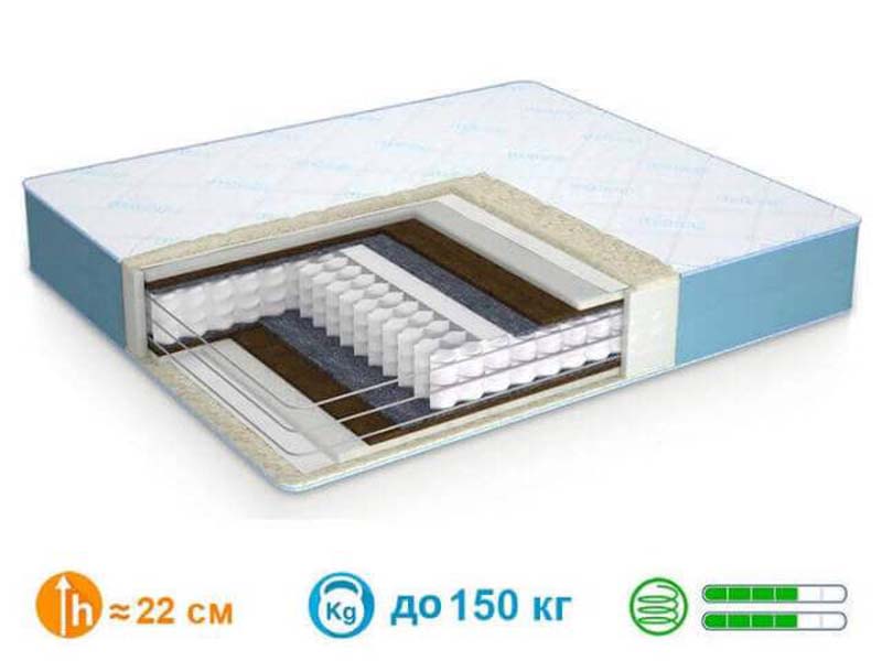 Периметр моделі посилений металевою рамкою і Єврокаркасом з інноваційної піни. Завдяки цьому забезпечується додатковий захист від пікових навантажень і краще зберігаються властивості матраца.