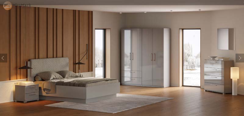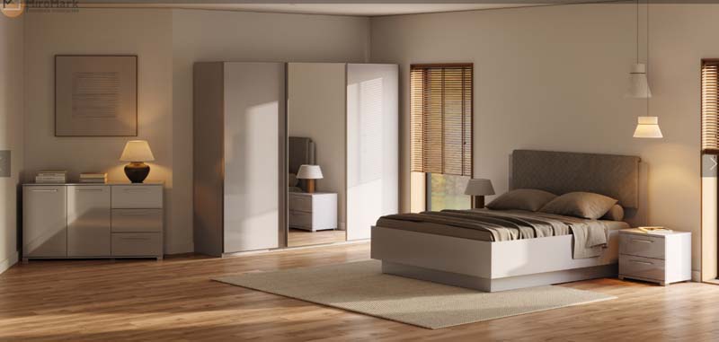 Розміри (довжина*висота*глибина) Ліжко 2-Сп 1.6 1650*1100*2062 Ліжко 2-Сп 1.8 1850*1100*2062 Тумба приліжкова 550*500*400 Комод 6Ш 700*1200*450 Комод 3Ш+3Ш 1400*900*470 Шафа 6Д 2700*2200*600 Люстро 1170*900*20 Шафа 4Д 1800*2200*600 Корпус: аляска (ДСП). Фасады: аляска/білий (ДСП).Модель обладнана висувними ящиками на направляючих повного висування.