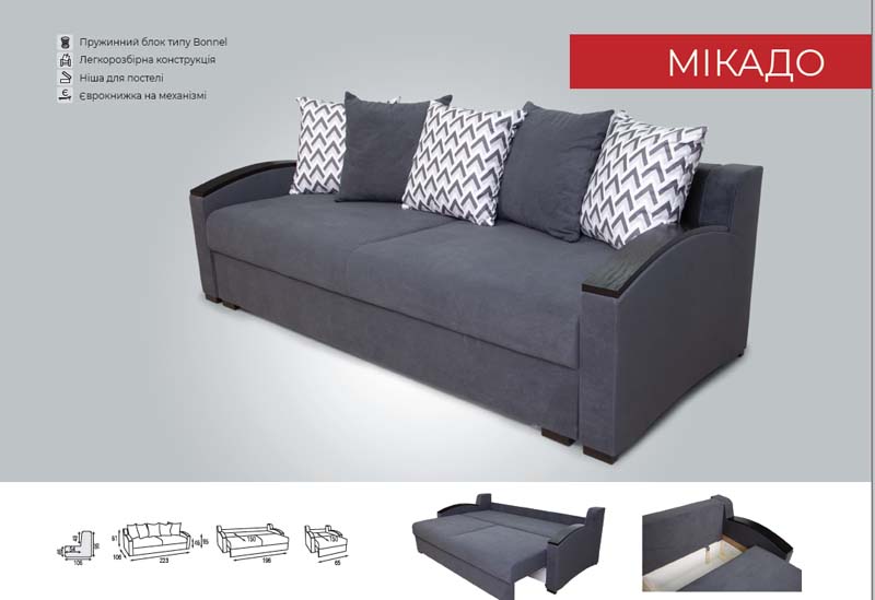Розкладний кутовий диван-ліжко виробництва луцької фабрики “ВНД” Якість диванів цього виробника перевірена роками успішної співпраці. Цікавий дизайн ? всі моделі оригінальні, стильні, плюс добротна акуратна робота. Особливість цієї моделі ? трансформація кута в диван, що дуже зручно для невеликих кімнат. Розміри кутка 2,40м х 1,11м(1,70м) висота 0,80м. Розміри спального місця 1,90м х 1,55м Дана модель розрахована […]