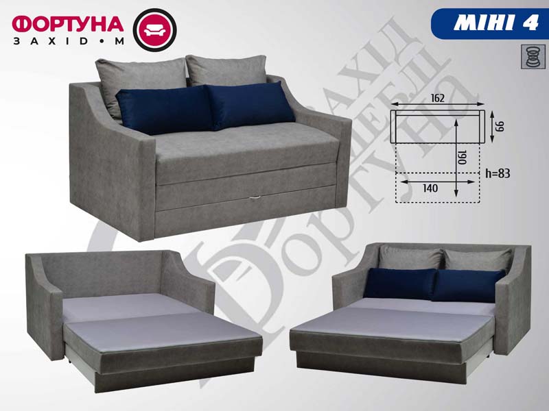 Головна / Каталог / М'ЯКІ МЕБЛІ / Дивани / Малютка, акордеон, софт / “Mini-4” 1,62