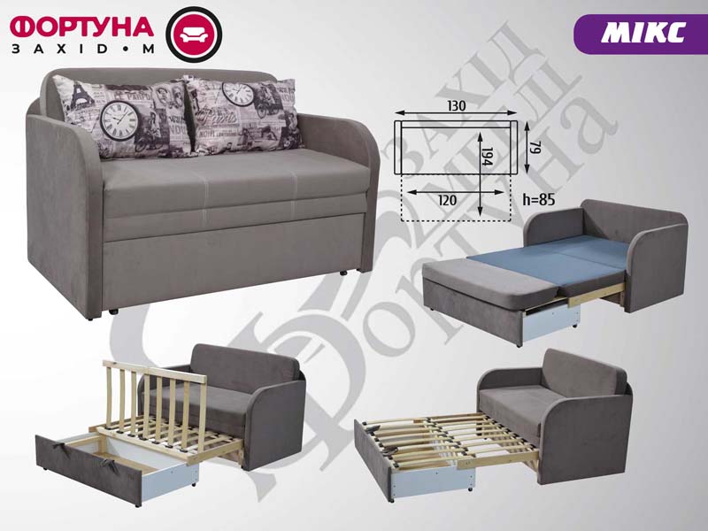 Головна / Каталог / М'ЯКІ МЕБЛІ / Дивани / Малютка, акордеон, софт / “Mix” 1,30