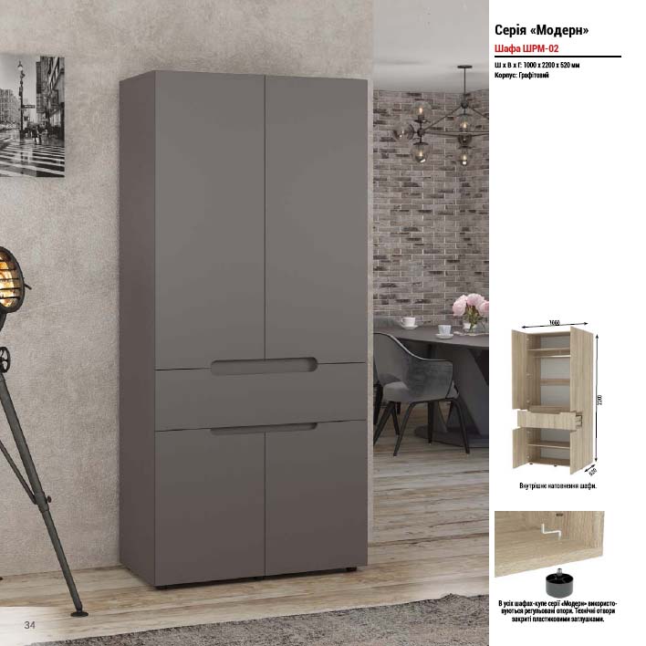 Висота: 2190 мм Ширина: 1960 мм Глибина: 600 мм