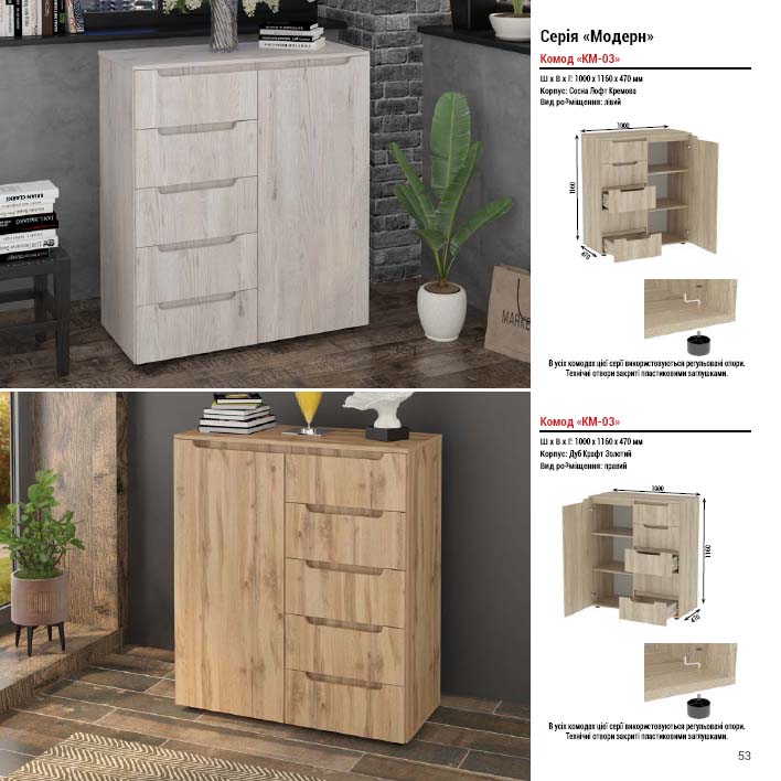 Габаритні розміри Висота: 94 см. Ширина: 100 см. Глибина: 50 см. Матеріали Деталі: Каркас комода і шухляд – ламіноване ДСП, фасад шухляд та стільниця – шпон МДФ. Дно шухляди : ДВП. Направляючі механізми: телескопічні повного висуву Кольори: Венге | Горіх | Лак | Махонь | Вільха