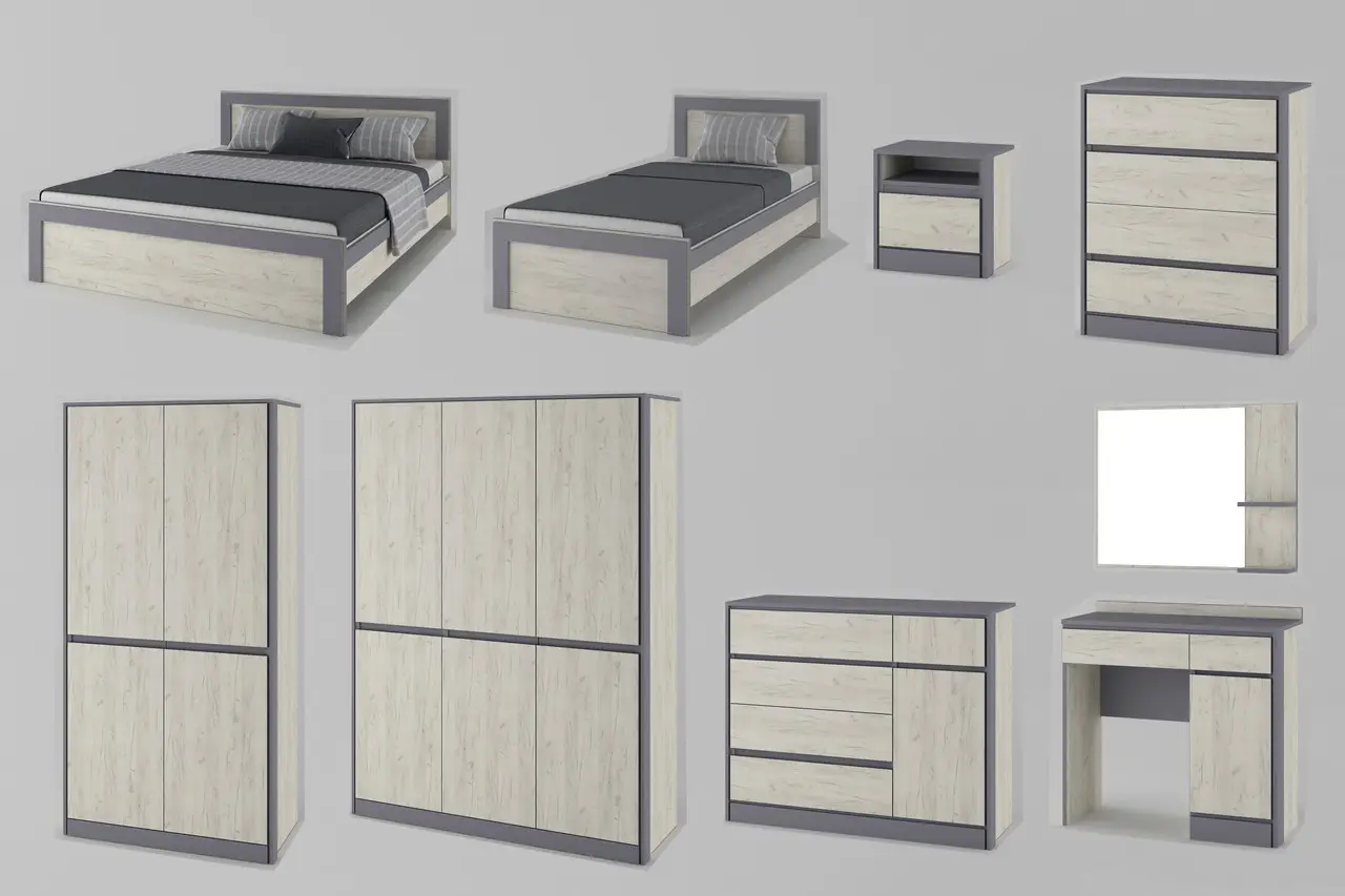 Комод . . . . . . . . 1334*811*404 Кровать 2сп (1,8м) . . . . . . . . 1868*940*2042 (1800*2000) Кровать 2сп (1,6м) . . . . . . . . 1642*875*2062 (1600*2000) Тумбочка . . . . . . . . 454*427*404 Шкаф 4Д . . . . . . . […]