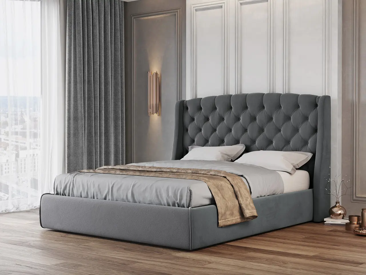Виготовляється з дуба або з вільхи. Розміри спального місця: 160х200,180х200. Можна комплектувати шухлядами або підйомним механізмом Розмір ліжка 1,87 х 2,20 (160х200), 2,07 х 2,20 (180х200)