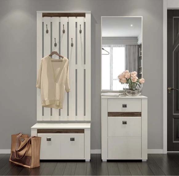 Прихожа Ширина: 1130 ммВисота: 1980 ммГлибина: 375 мм Тумба Ширина: 580 ммВисота: 1320 ммГлибина: 265 мм Корпус Дуб Сонома або Венге Темне Фасад МДФ Венге Темне або Білий