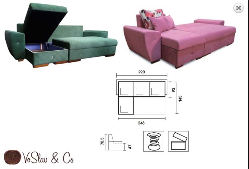 габаритні розміри довжина дивана 293.0 (см) глибина дивана 190.0 (см) Висота посадкової частини дивана 45.0 (см) Висота дивана з урахуванням спинки 80.0 (см) Розміри спального місця Довжина спального місця 263.0 (см) Ширина спального місця 132.0 (см) Матеріал виготовлення каркас дивана натуральне дерево, ДСП, ДВП Підстава спального місця дерев’яні ламелі опори дерево