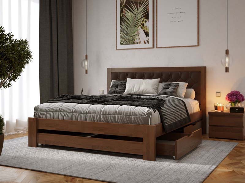 Фабричне дерев’яне ліжко Розміри спального місця Довжина: 190, 200 см Ширина: 90, 120, 140, 160, 180 см Габаритні розміри Довжина: + 10,5 см до ширини спального місця Ширина: +16 см до ширини спального місця Висота бильця голови: 94,5 см Висота бильця ніг: 52.3 см Відстань між ламелями: 7 см Матеріали Порода деревини ліжка на вибір: […]