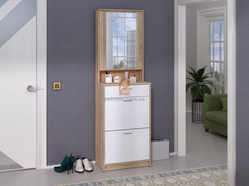 Прихожа Ширина: 1130 ммВисота: 1980 ммГлибина: 375 мм Тумба Ширина: 580 ммВисота: 1320 ммГлибина: 265 мм Корпус Дуб Сонома або Венге Темне Фасад МДФ Венге Темне або Білий