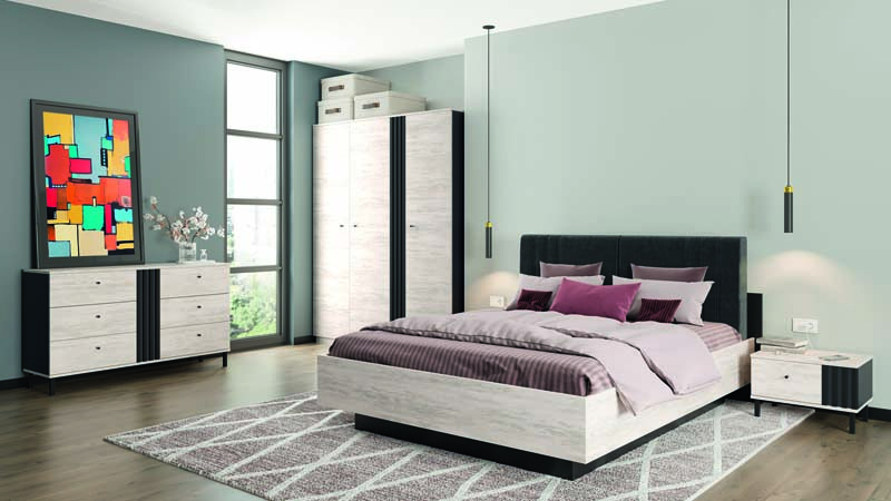 Корпус ліжка ДСП: Дуб артизан / Артвуд світлий / Чорний.Матеріал м’якої частини – тканина.