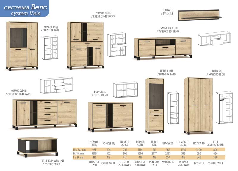 Категорій:ВІТАЛЬНЯ, ВІТРИНИ, БУФЕТИ, ЖУРНАЛЬНІ СТОЛИКИ, КОМОДИ, Модульні, ТВ-ТУМБИ